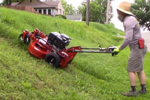 The Hydraulic Walk Behind Mower FW15 provides a narrow footprint for trimming around trees and planter beds.