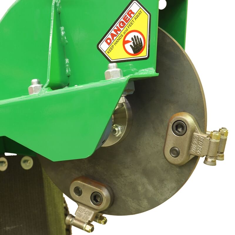 The Red Roo SH400 stump grinder's unique design pivots over the center line of the wheels, allowing the grinding head to sweep easily across the stump while the wheelbase remains stationary.