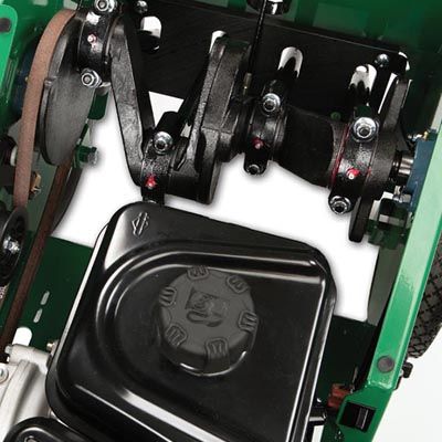 No add-on weights are required, and reciprocating cam-driven tines propel the unit forward and drive cores up to 70 mm (2.75") deep even in difficult soil conditions, offering higher quality aeration than traditional drum-style units.