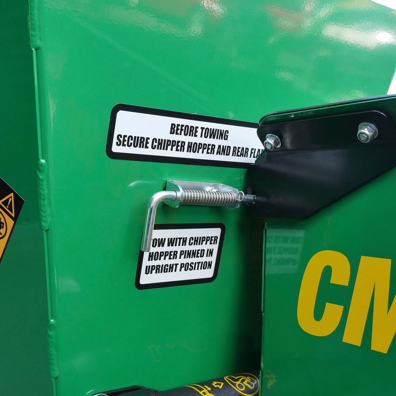 The CMS100 chipping hopper chips branches up to 100mm (4") in diamter, and the mulching hopper shreds smaller leaves and branches up to 50mm (2").