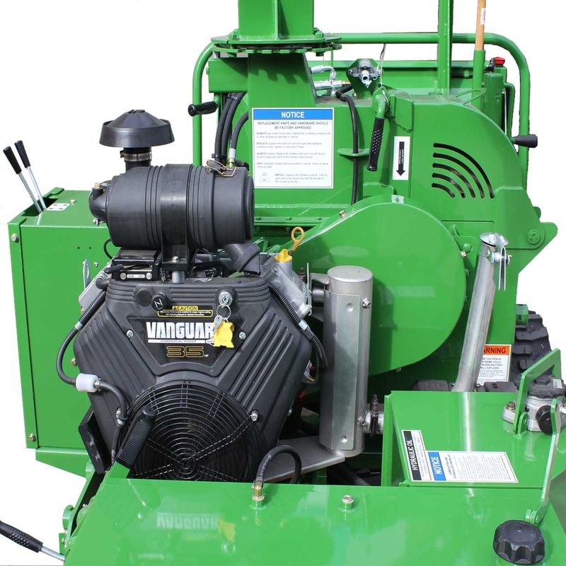 The chipper features two engine options - a 33hp (25kW) Kubota D1105 liquid-cooled turbo diesel and a 35hp (26kw) Briggs & Stratton Vanguard V-twin petrol engine.