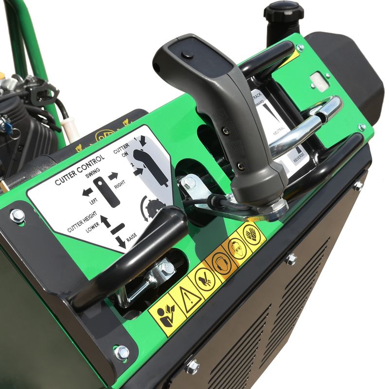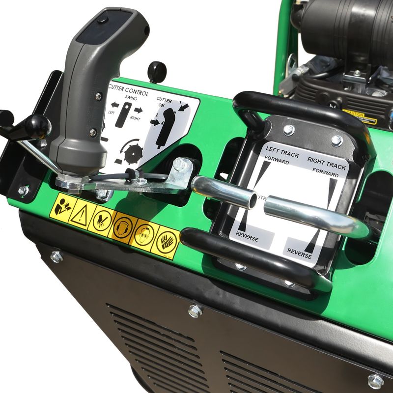 Intuitive controls provide one control for each track and a joy stick to control the cutting head slew function.